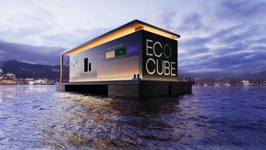 ECOcube di Maservis ha ricevuto l'ultimo premio di design ambientale per il suo pontone solare, realizzato in fibre naturali e utilizzato per raccogliere le acque reflue e nere, fornendo al contempo acqua da un dissalatore.