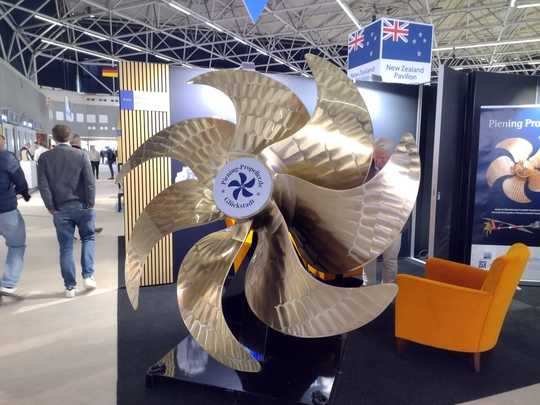 Una menzione speciale va fatta per alcuni componenti spettacolari, come questa elica XXL di Piening Propeller, che di per sé riassume l'ingegneria tedesca al servizio delle grandi unità.